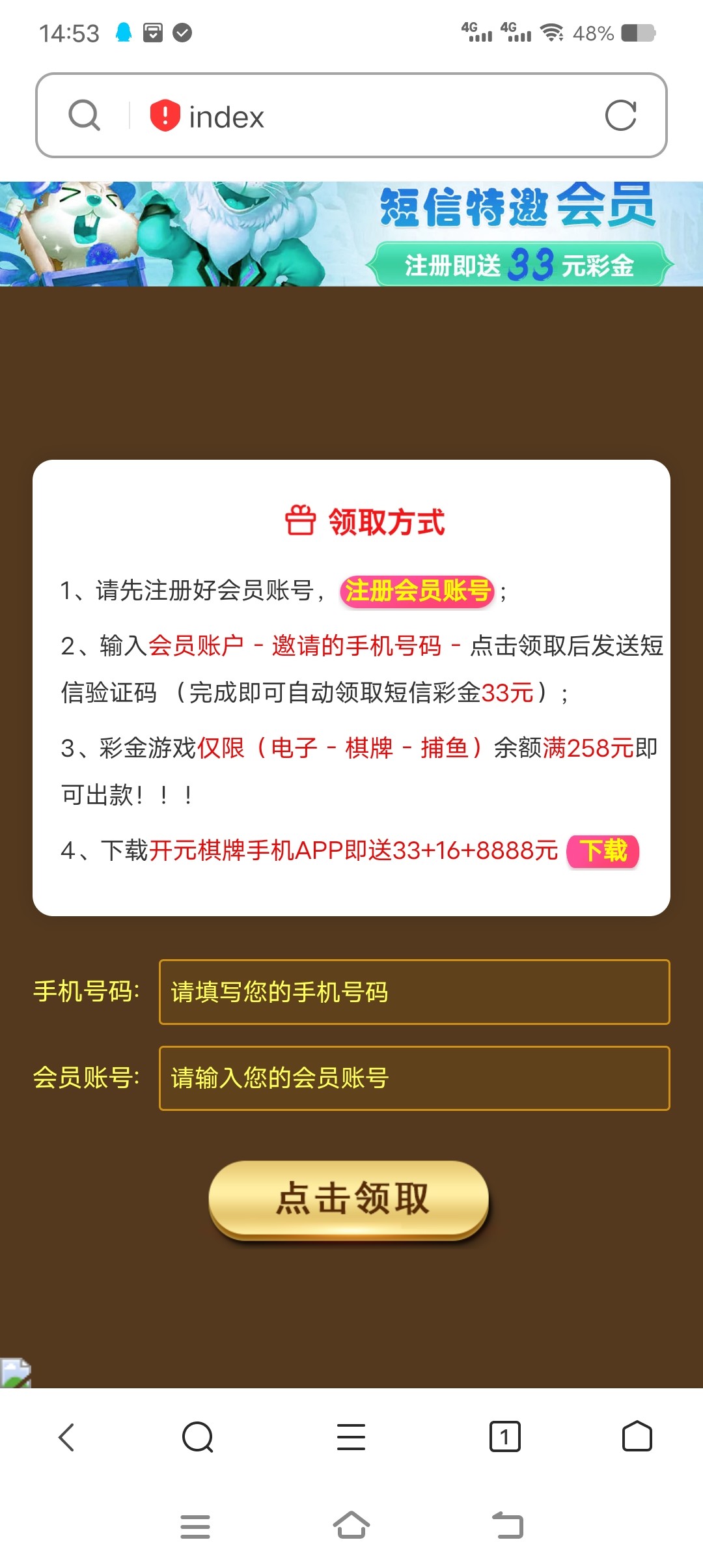 33太慢了,中午申请现在还没到,他妈的真够庄,还不如弄个发短信的