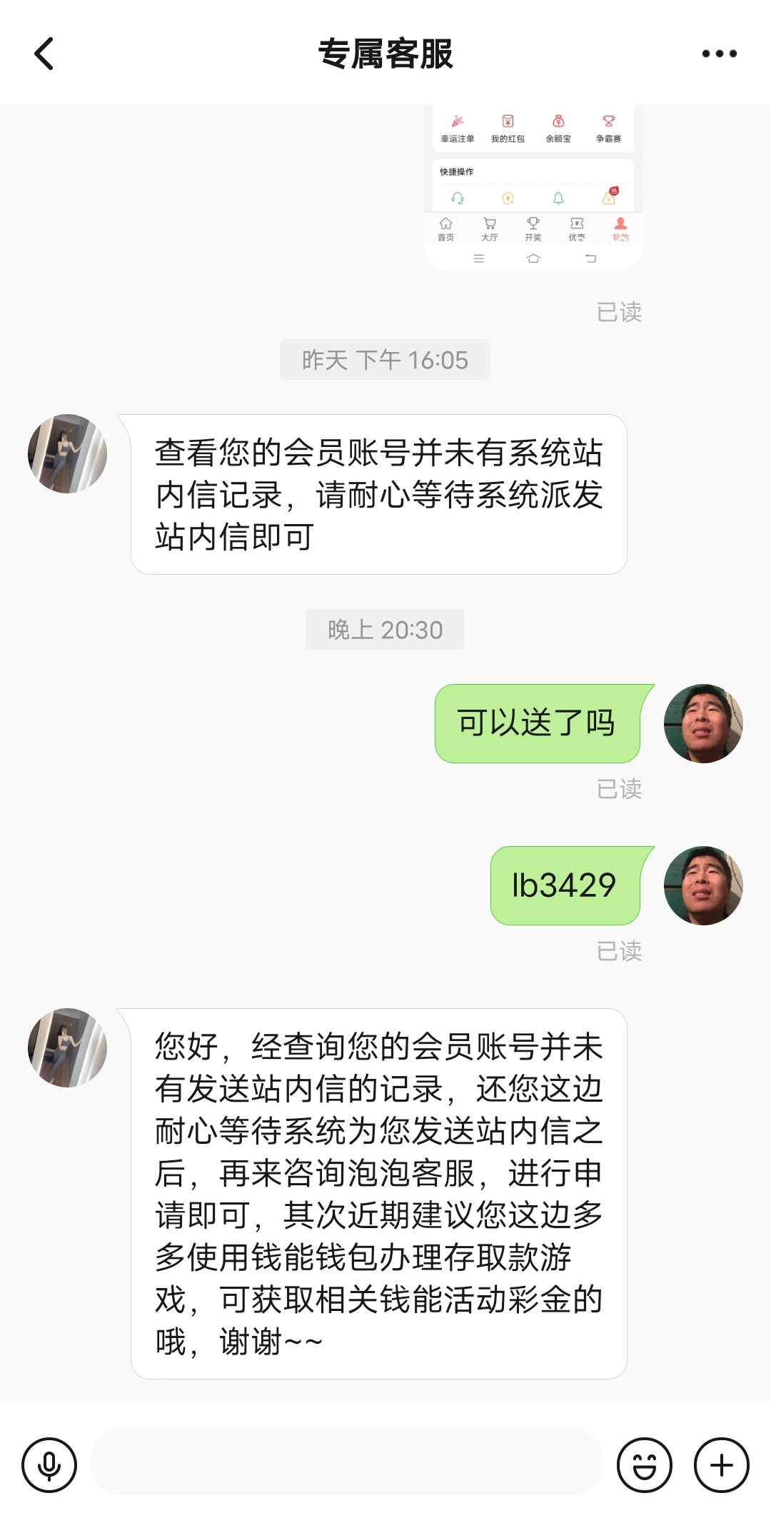 qqsuohage ▶ ww3779 没信息,不过之前活动由有站内信,直接找客服他就送了 2023-8-13