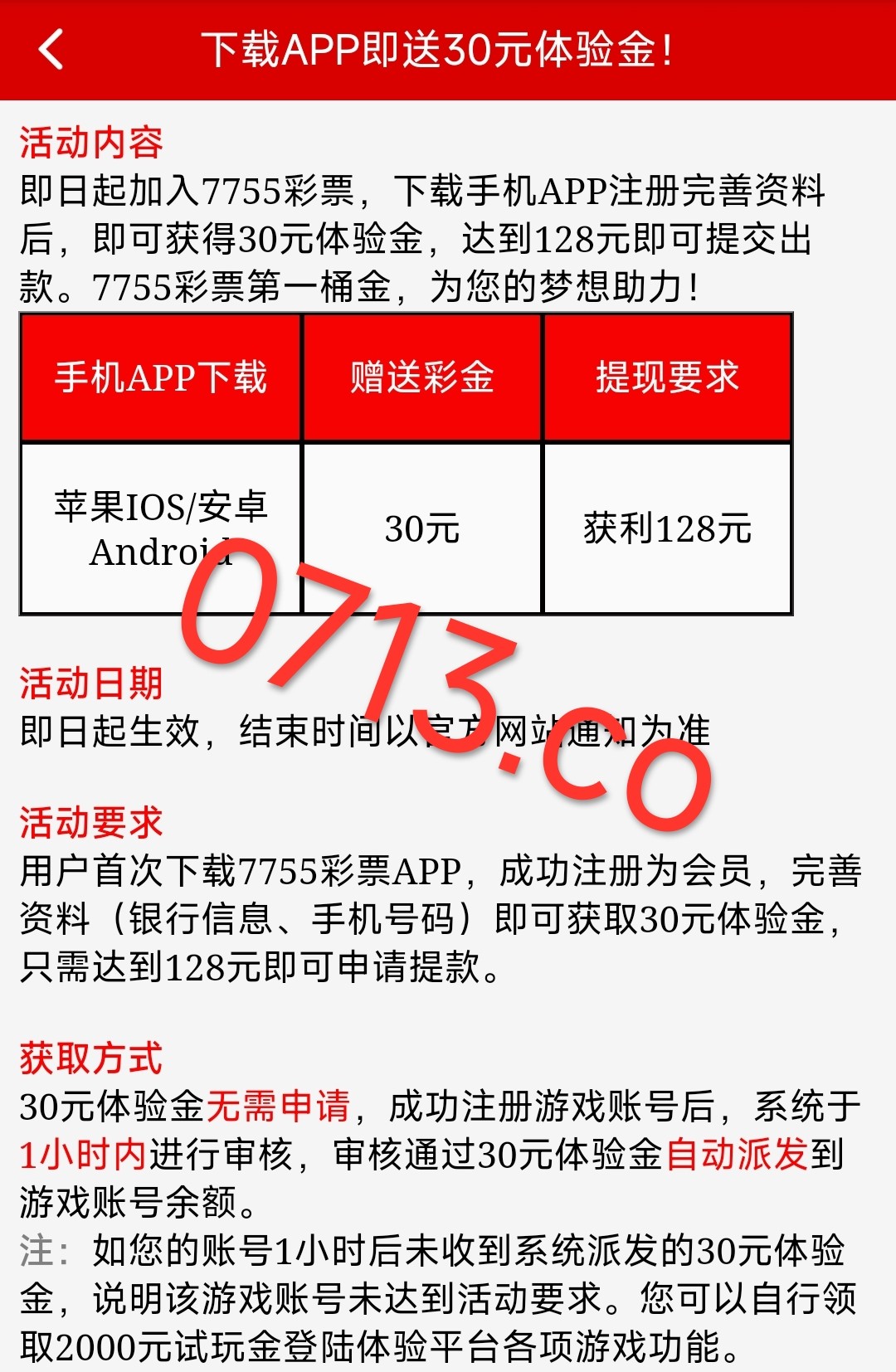 新用户下载app注册绑卡绑手机号一小时内自动赠送30元彩金 无游戏限制 最低提款128元
