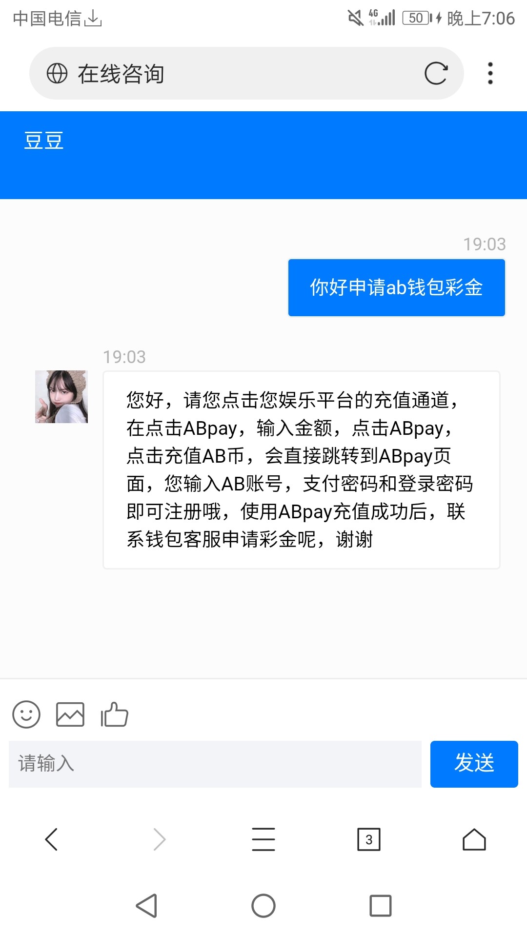 联系AB客服申请28,自己充到平台!