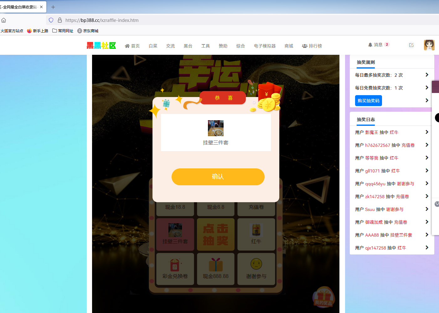 第一次抽奖就中了挂逼三件