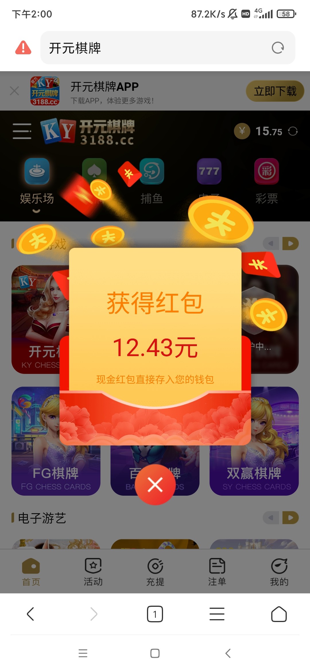 垃圾平台。前一段时间还充值娱乐来着,都没有红包。
