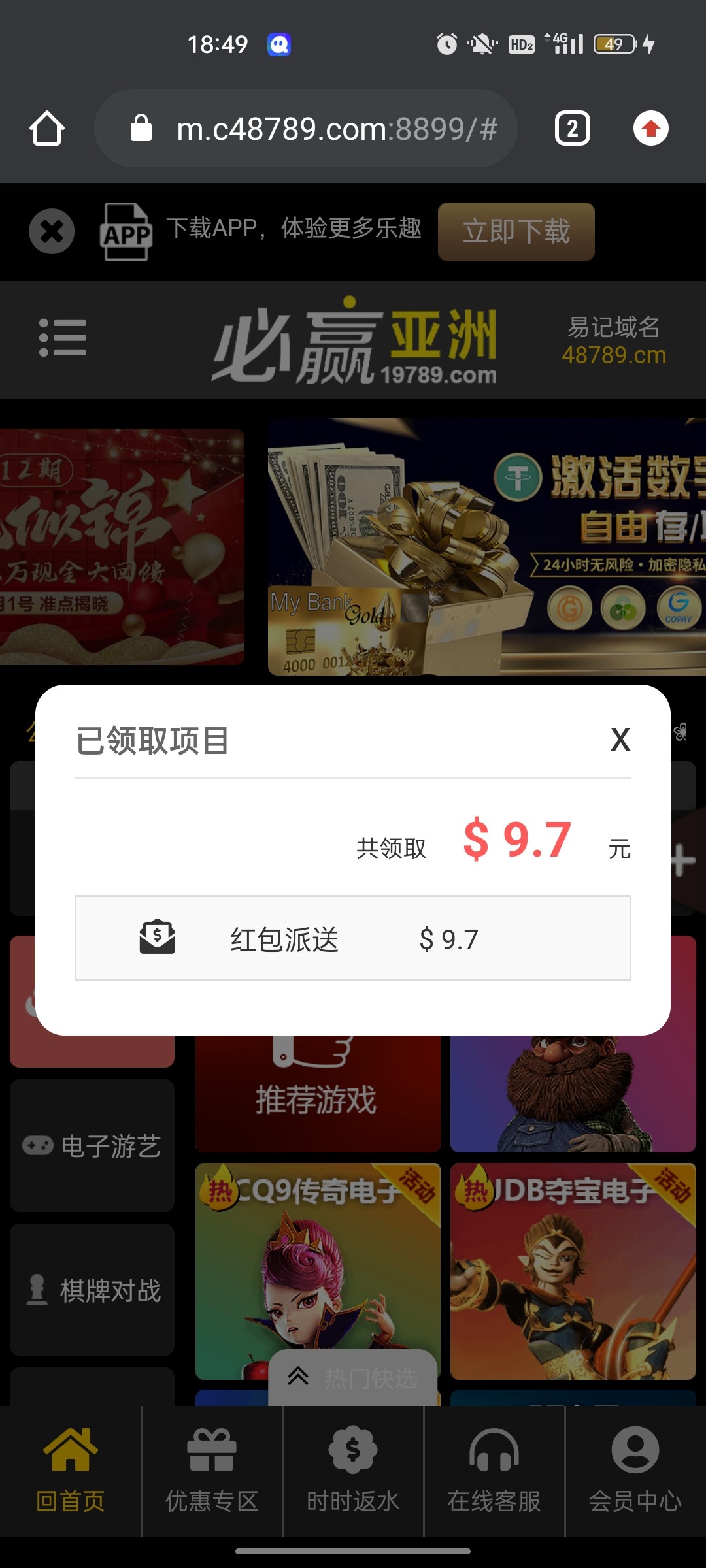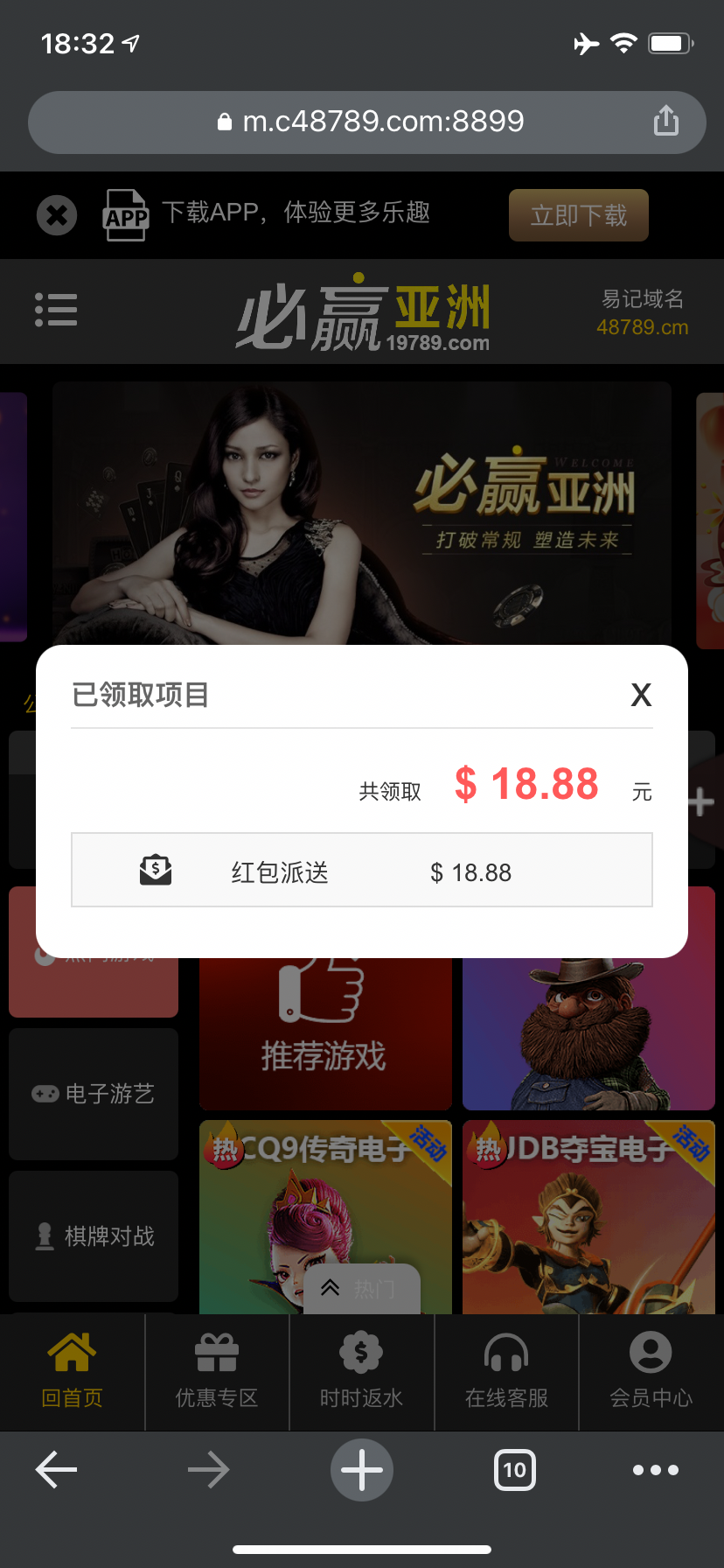 回馈18.88/100 一杯提款;有号的可以登上去看看,没送直接无视