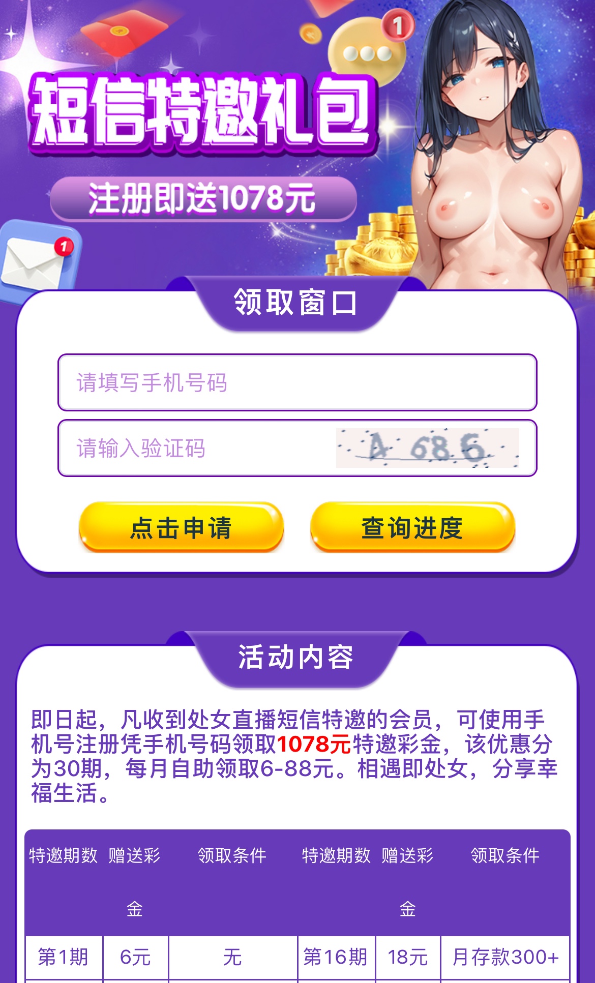 老白菜了半个月前发过一次,今天又收到短信了没弄过的老哥去试试,注册绑卡活动里自助申请,别充值黄播台都比较黑