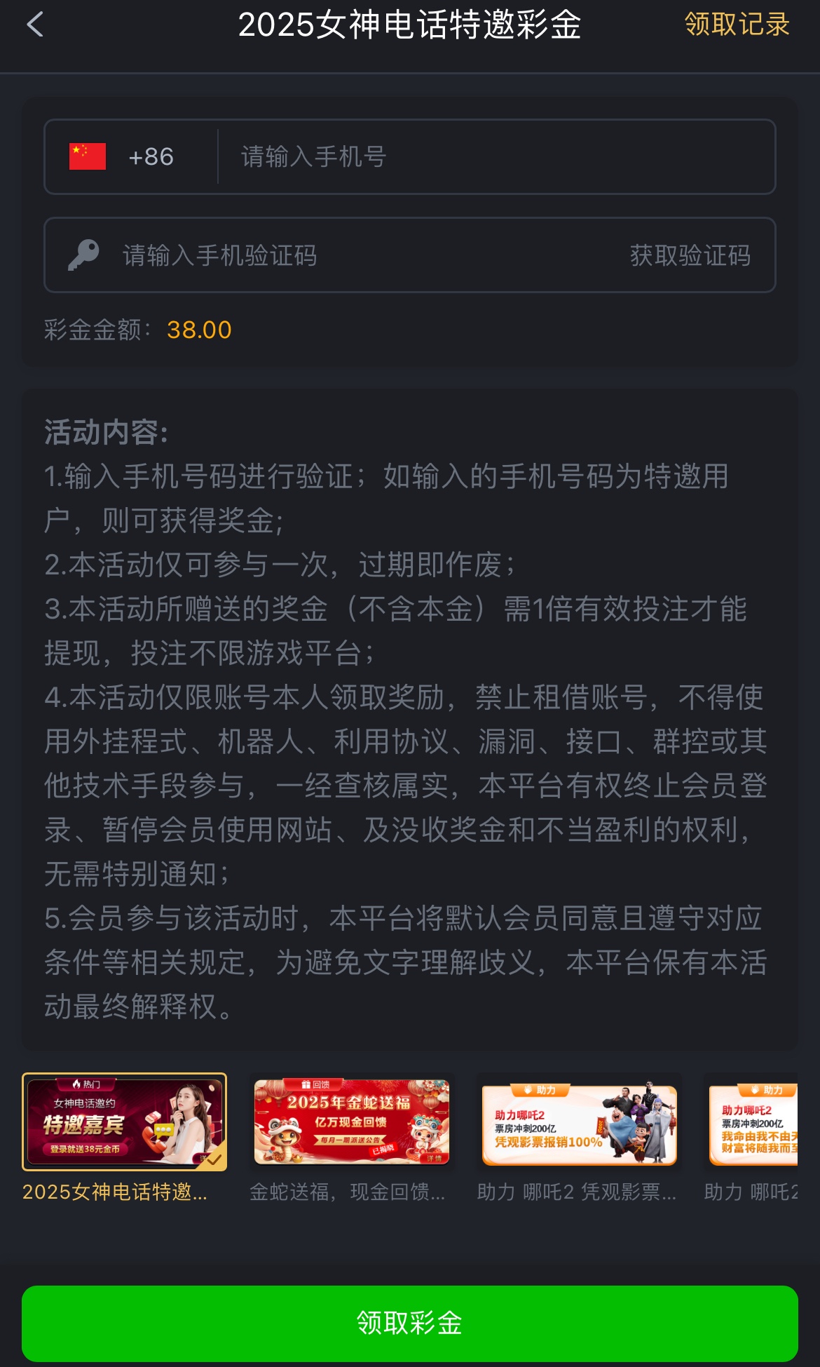 这个38,需要充值,打38的的流水才能玩这个送的38,平台最低充值10,大家自己研究下,被黑自行承担