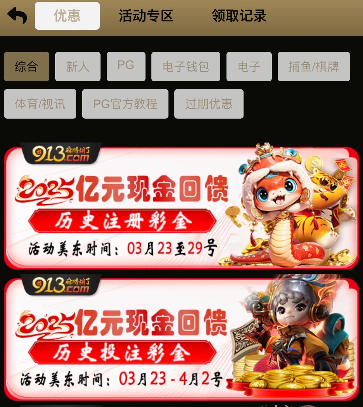 在3月20号之前注册的老哥可以下载APP领13彩金,充值过100以上存款5次以上可以领26