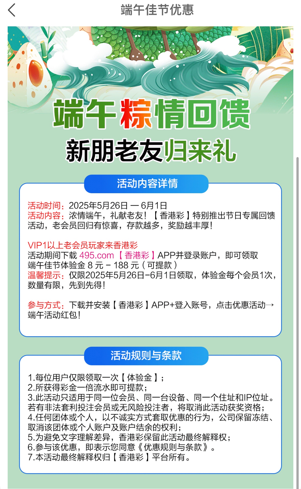 【香港彩495】—✅—端午回馈