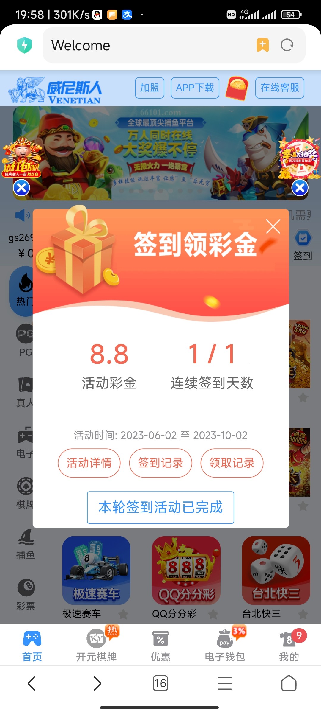 领了8.88和反水又嫖100