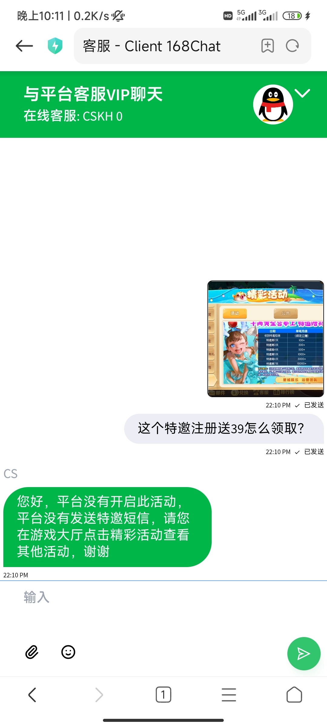 客服说没这个活动自行截图活动最底下的特邀VIP给他看