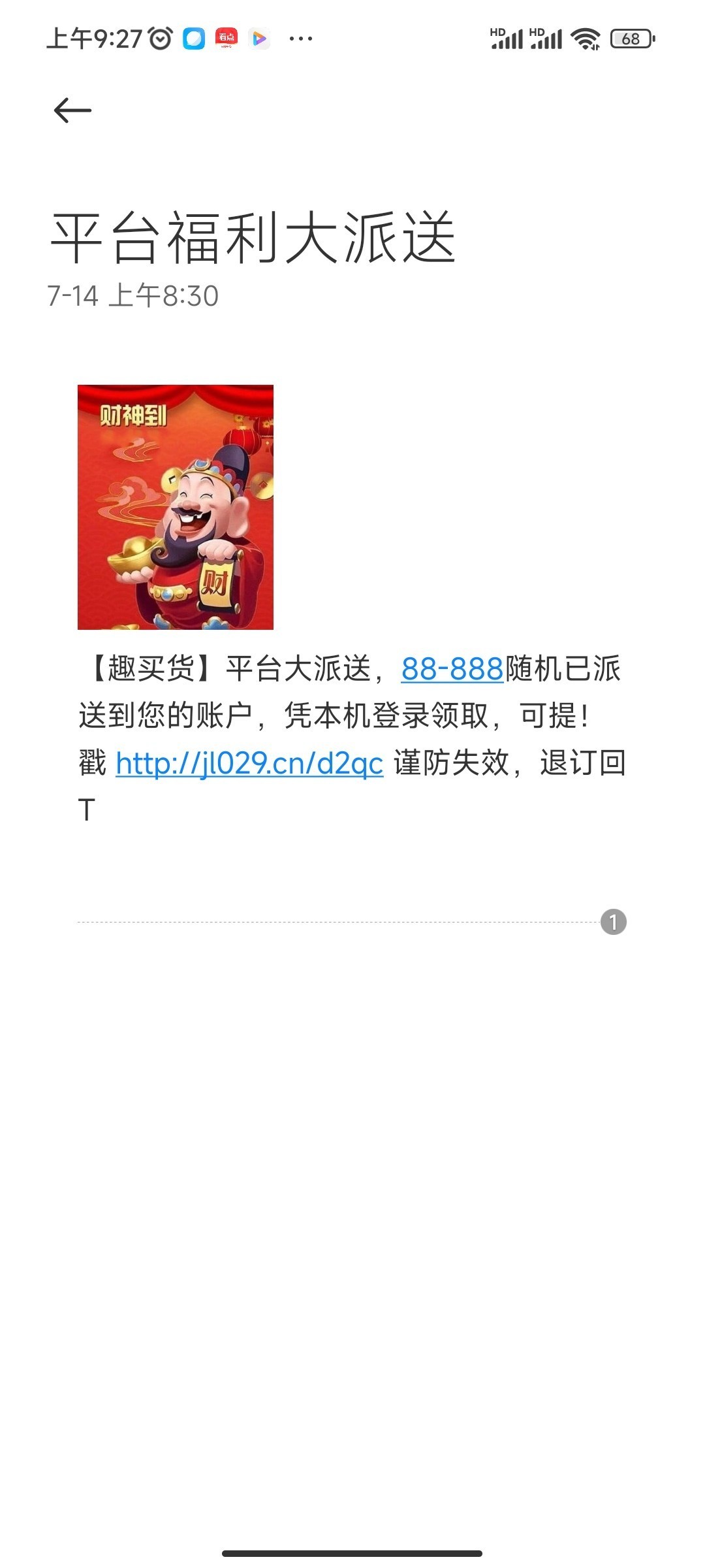我一个月都没有收到赌博平台的短信了  见了鬼了
