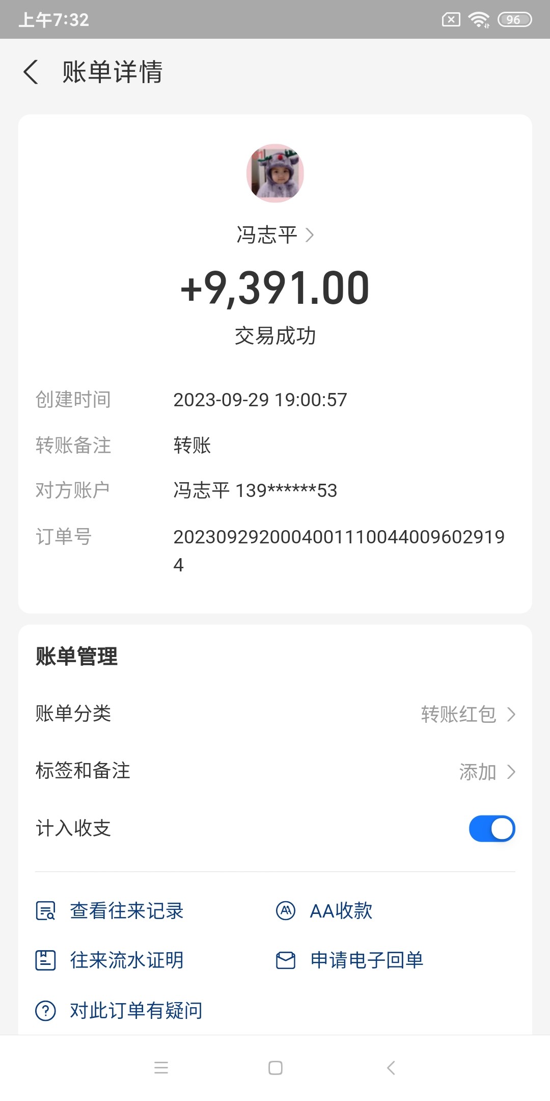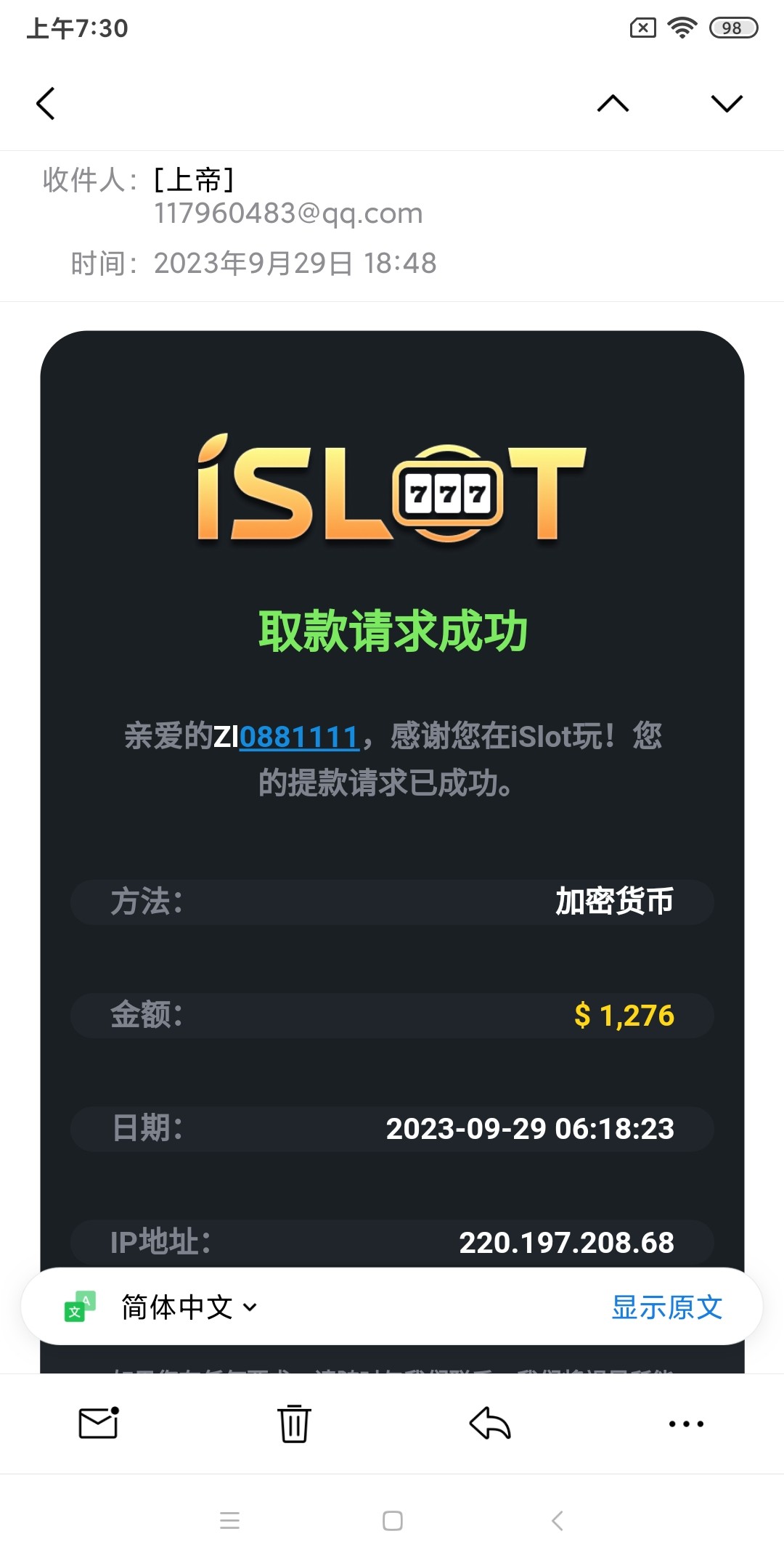 到账了