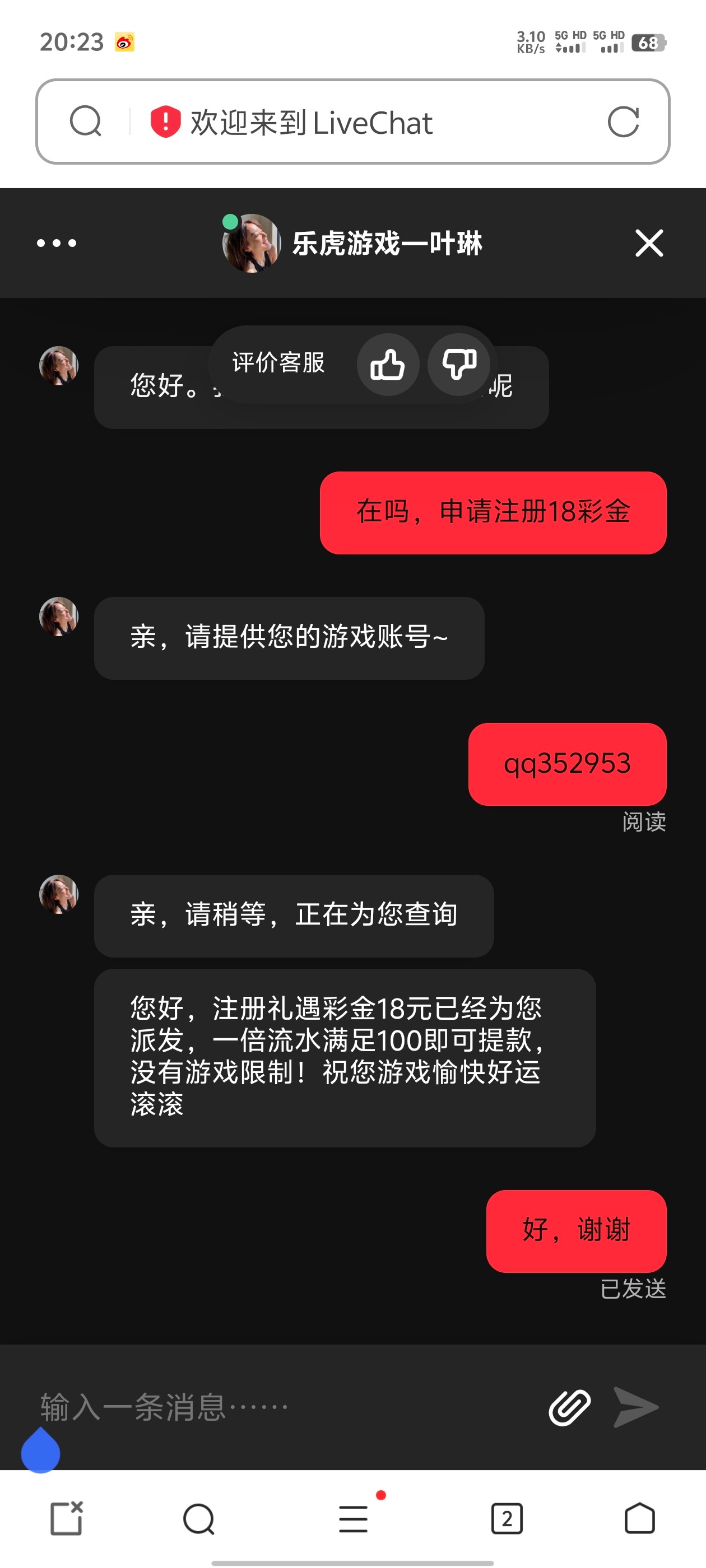 找客服送了18就说短信来的,白嫖215