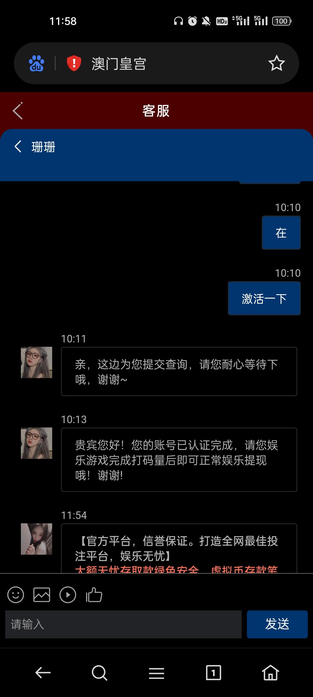 短信特邀来的 存了100打到两百多不给出款 要我充值 黑台兄弟们别上了啊