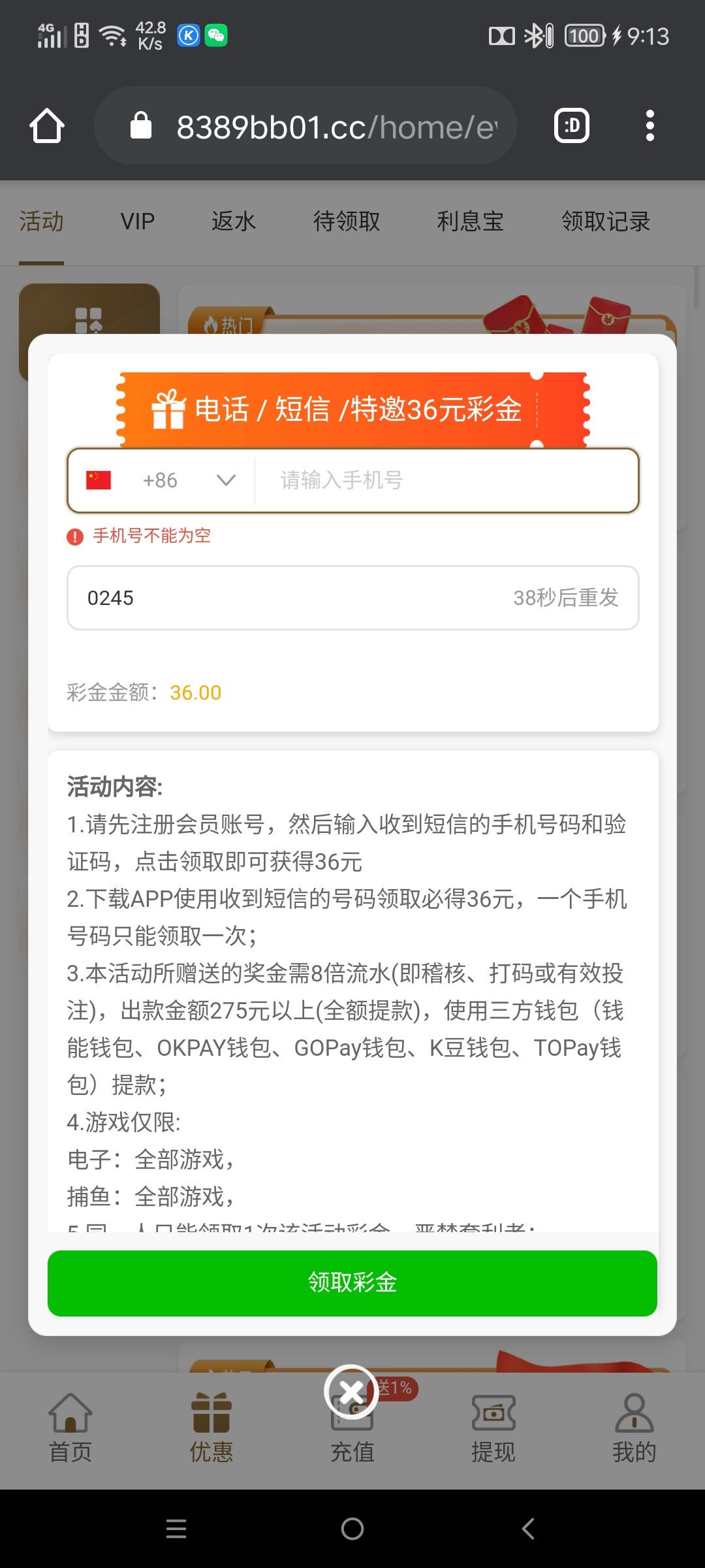 注册绑卡,优惠输入手机号自助申请提交出款自测!