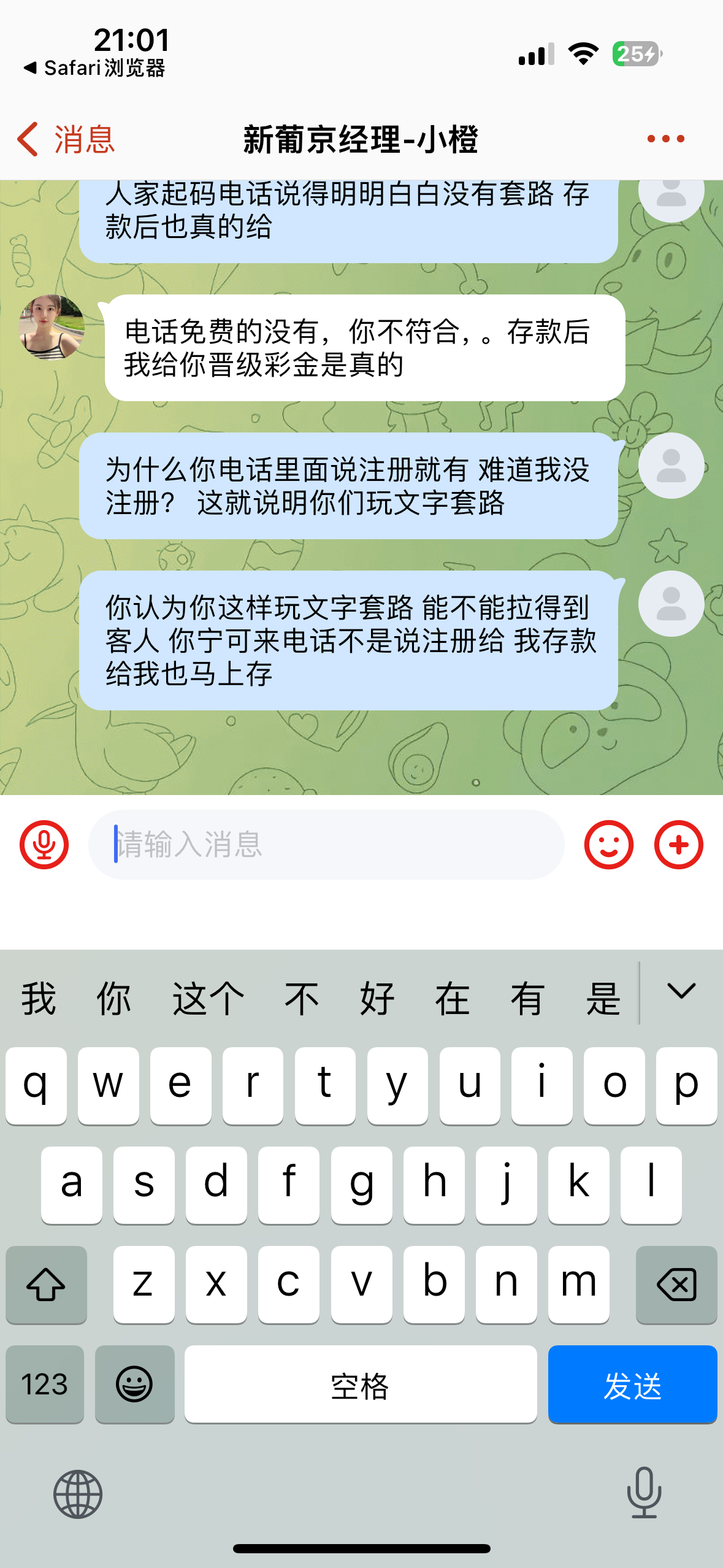 也给我打电话送彩金,注册了没有,然后把电话花了