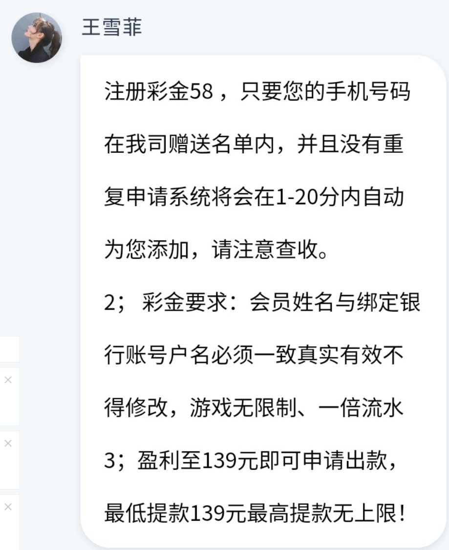 看看有没有短信,注册完善信息,客服申请。彩金限制最低139出