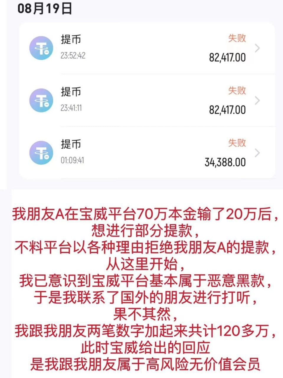 建立在信任宝威平台的前提下,我加大了投注量,但从7月份开始,平台开始找各种理由借口拖延提款的时间,但好在名为波导的高管,都会在第一时间及时处理这些问题,并且得到了有效的解决,导致我越来越信任他,且进行了大金额充值,从而慢慢的掉入宝威精心谋划的陷阱....