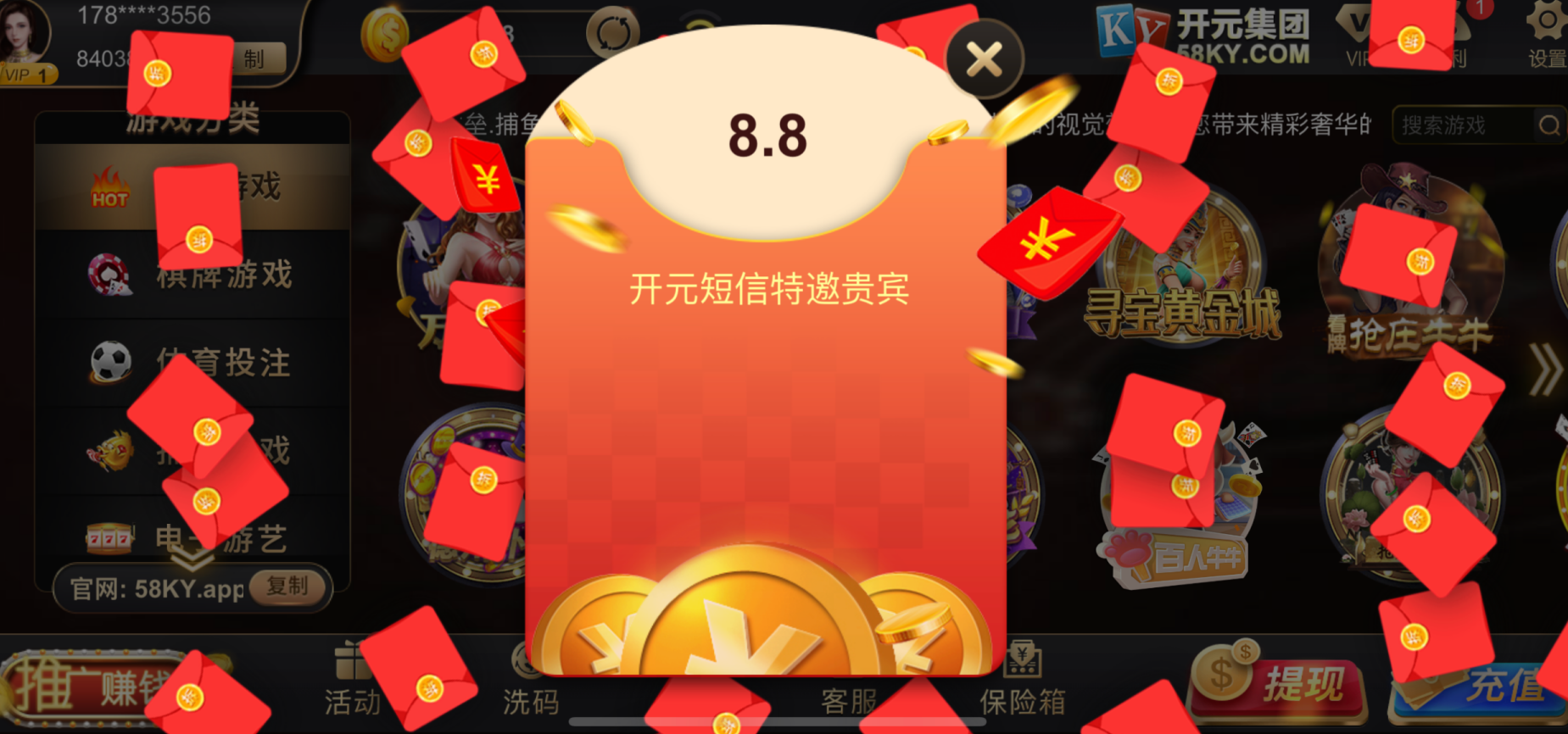 短信特邀注册送8.8;充值不可能