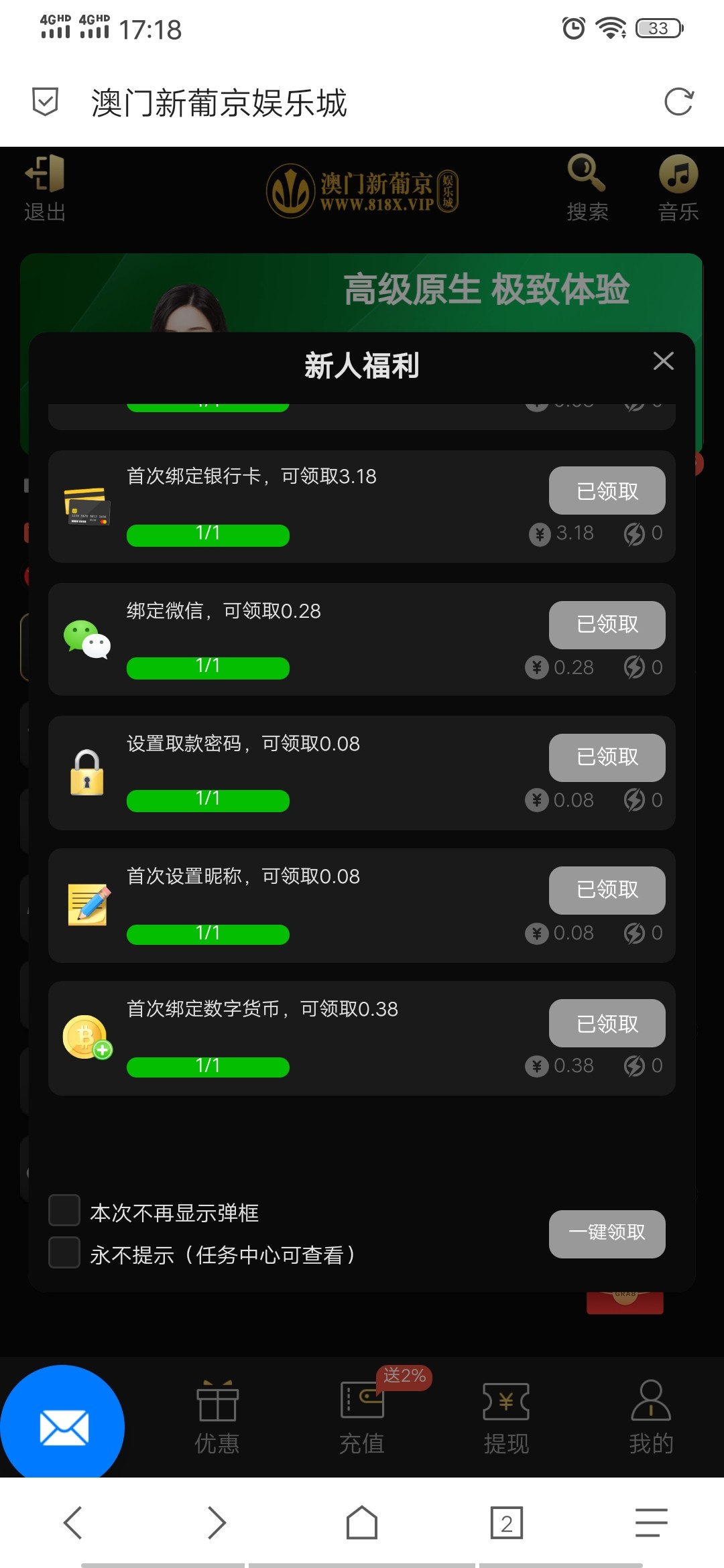注册任务8元彩金,可以电子