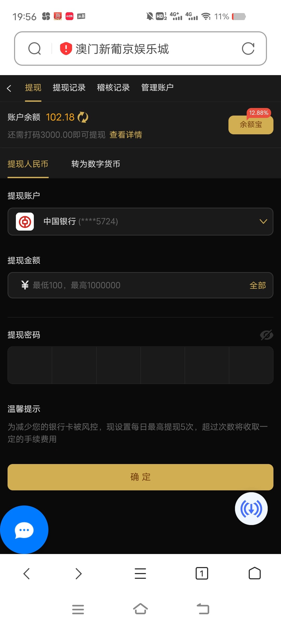 傻逼台子  提现失败  还要1万流水