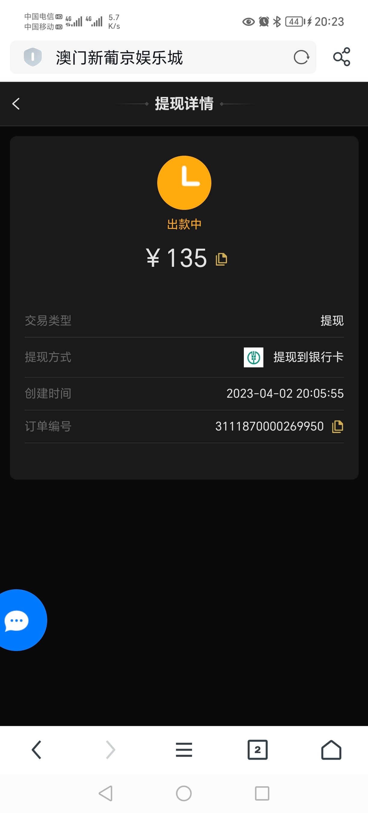 提现320,出款中,好慌