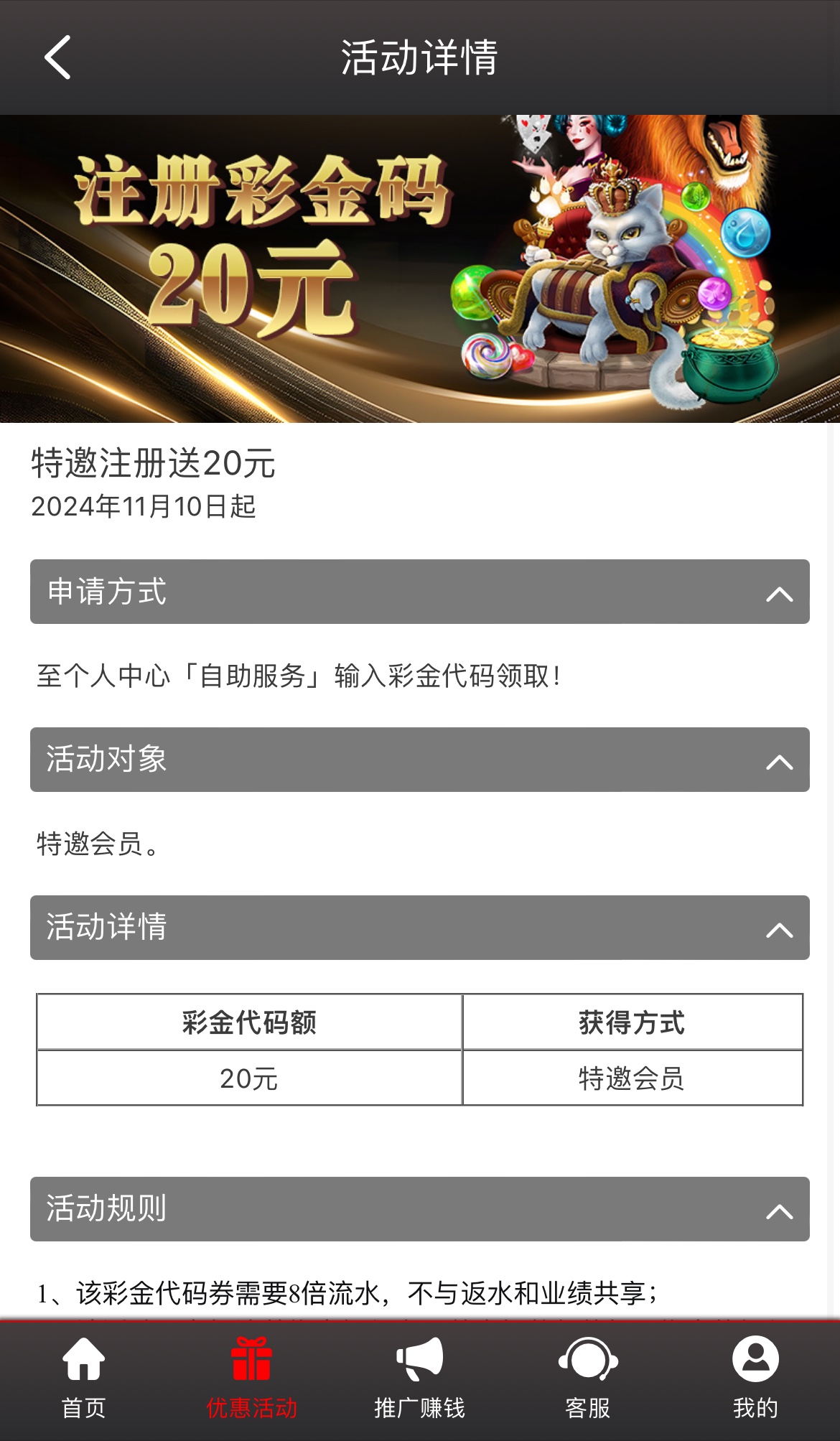 没有彩金代码