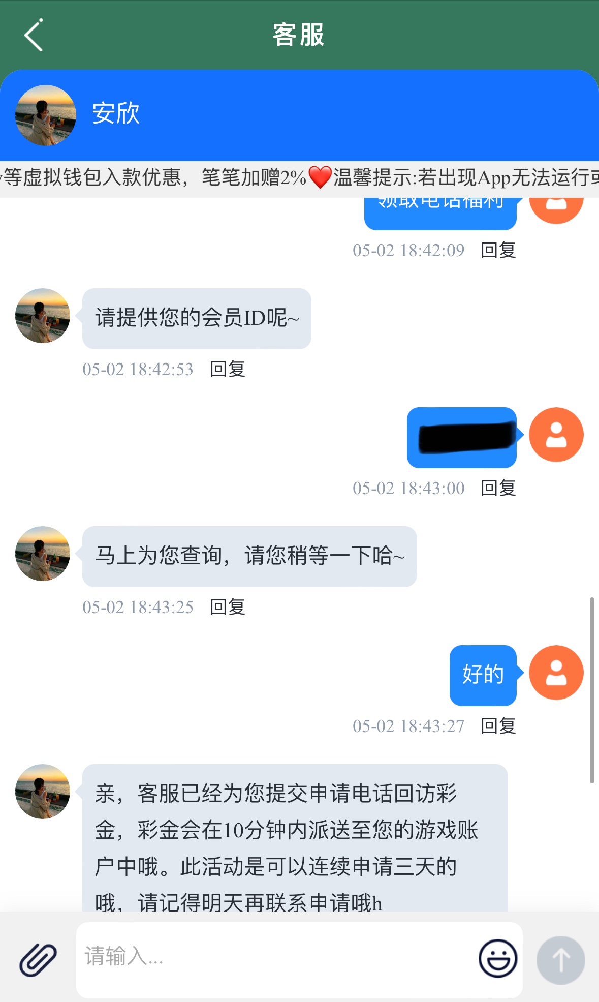 碰瓷电话福利彩金送3,彩金三倍流水,连续送3天,之前有号的兄弟可以上号复制ID联系在线客服碰瓷电话福利