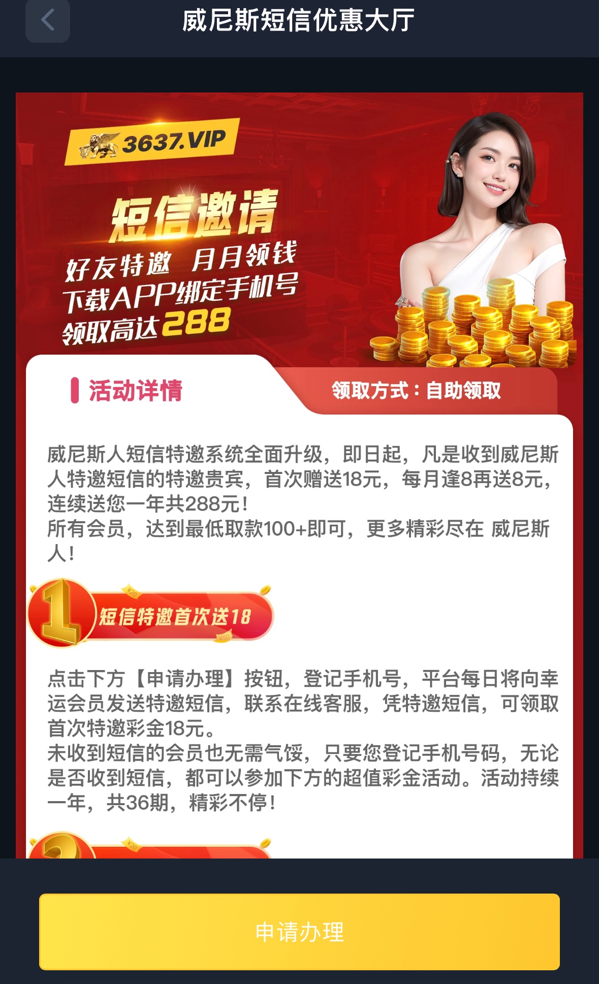 特邀碰瓷,注册完善资料优惠里申请彩金,APP更新前使用APP登入过的VIP1以上的老会员下载新APP联系客服领取补偿50次电子免费转彩金