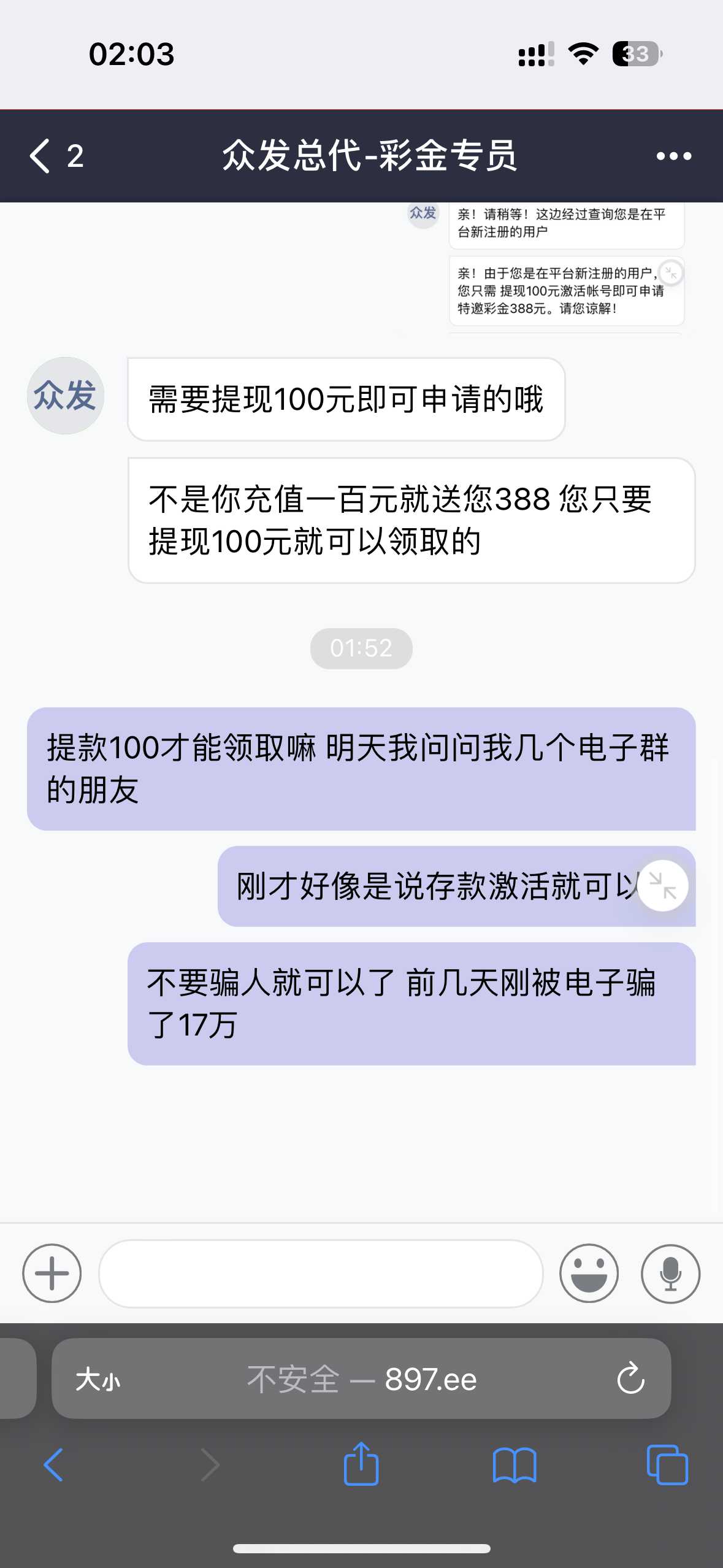 玩尼玛这傻逼台跟我说啥子平台合并送我388让我充值五十激活账号就送  充值了又让我联系平台微聊客服   微聊客服又让我下载聊天软件添加导师  添加导师又让我存款,然后提现一百就送   反正就是套娃一样的   提现一百可能还是不会送又出其他套路傻逼一样的平台