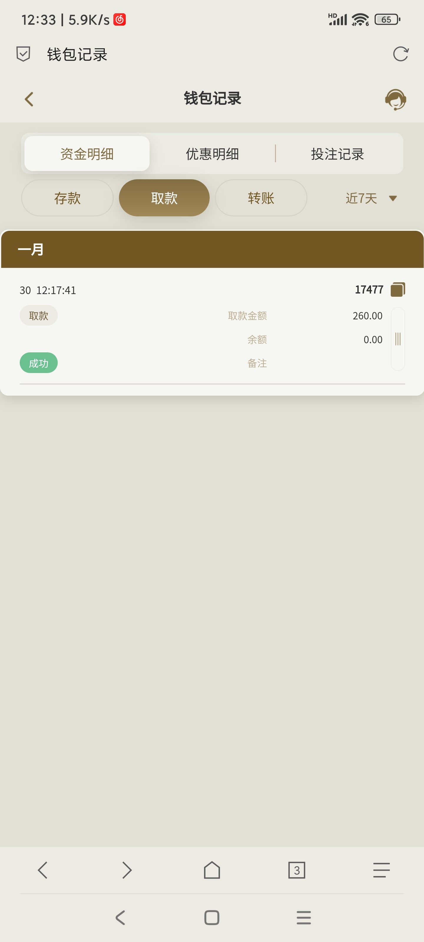送11,打电子,水大,出260到账