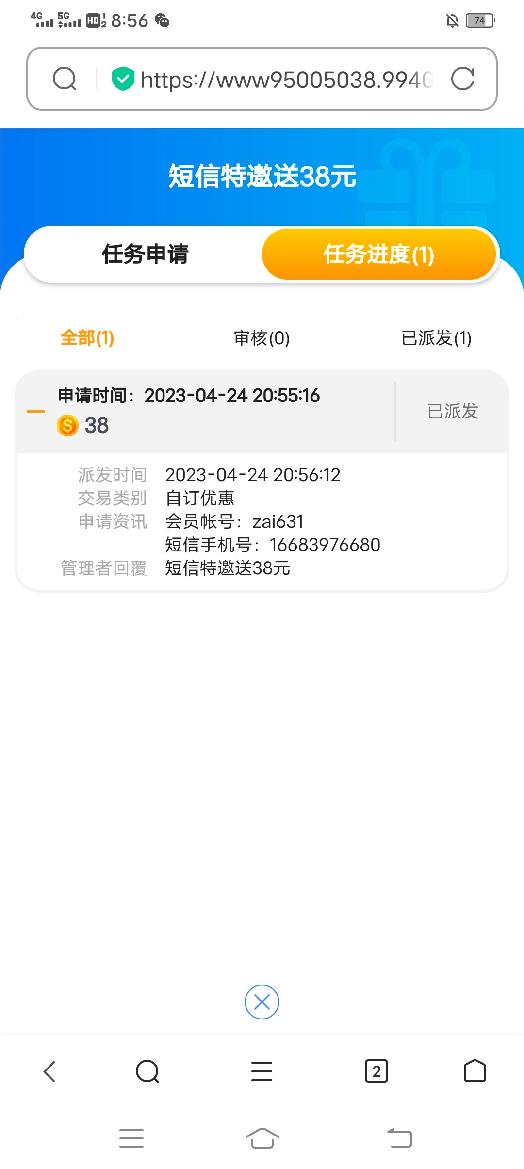 要发就多发一点那种注册送的,不管送多少,是不是你发这种特邀的,又影响收到短信的用户,没有收到的他也会去优惠里面去看去申请,那你说人多了,人家能不关闭活动吗,