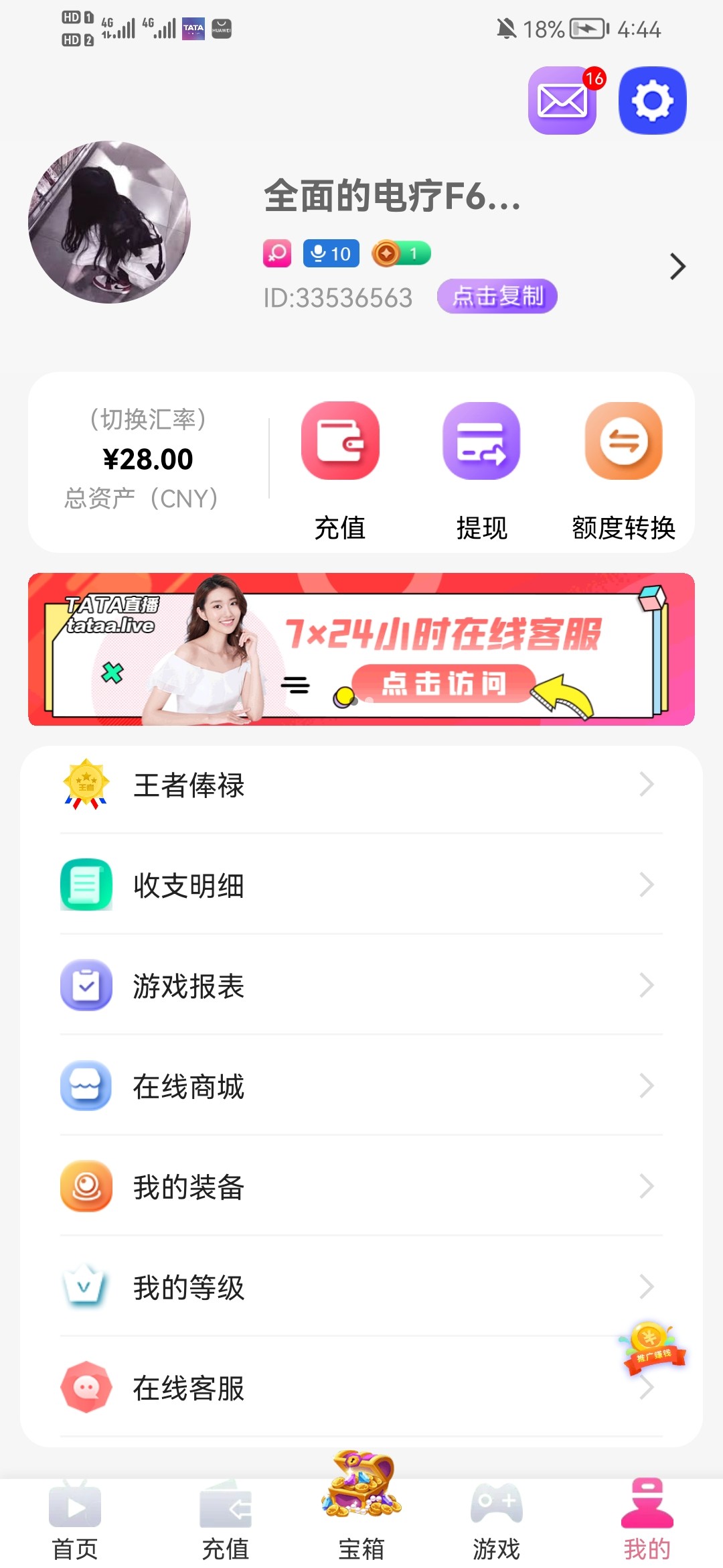 兄弟们 这台子能玩  充一百找客服领46彩金  二百左右流水就能提出来 我玩脸谱爆了好几次一百多倍  提了四百到账了