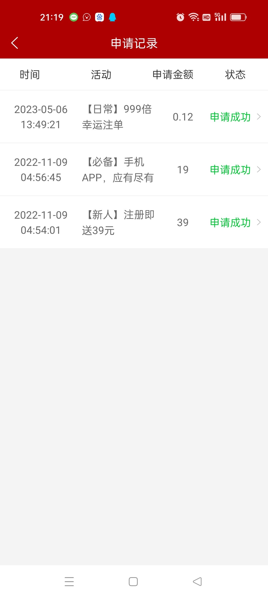 这个我有四个号申请成功了一个   打到399正在提现  不知道能不能到    先玩的运象然后麻一        感觉挺水的  麻一免费几十下就来一个每次只要免费肯定免费里再出一个免费