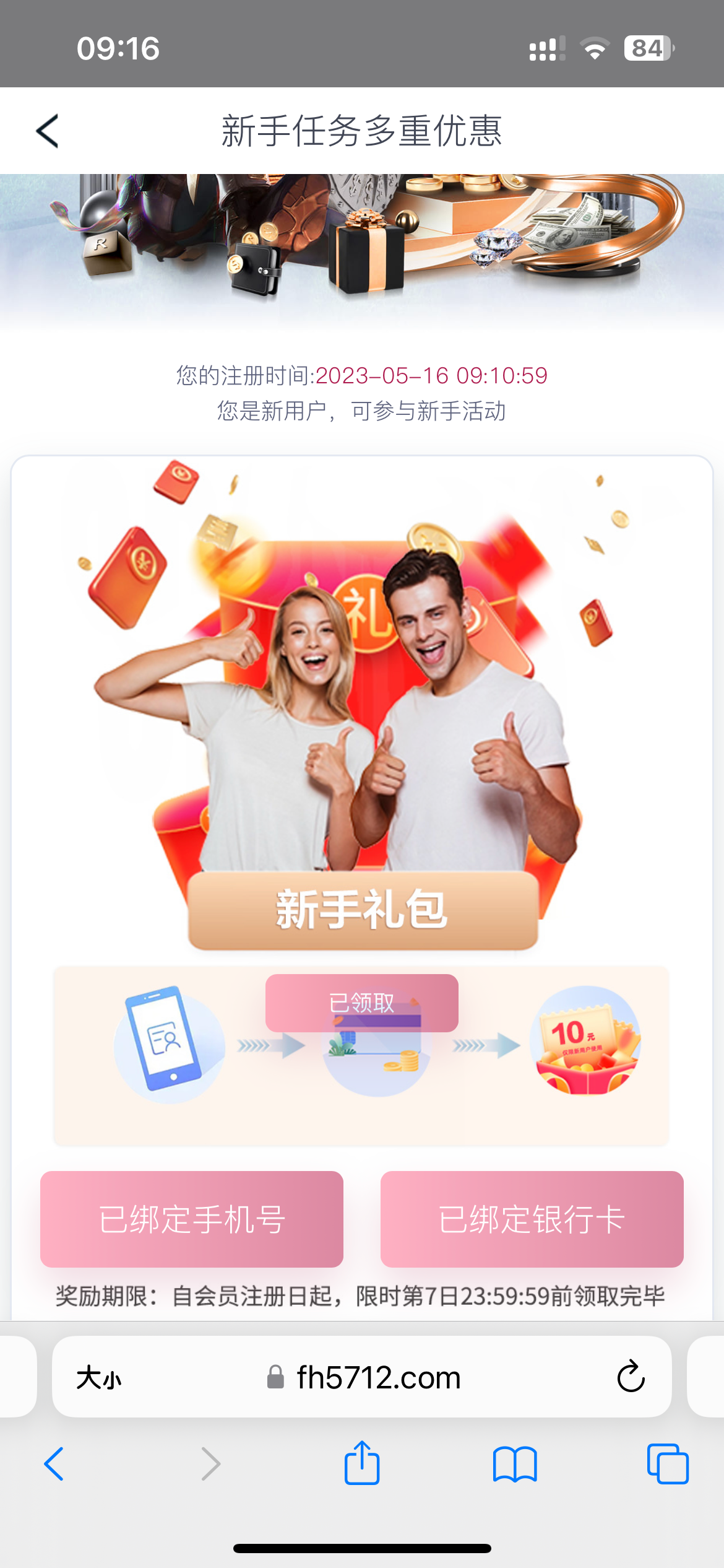 注册绑卡 绑手机号 活动里领