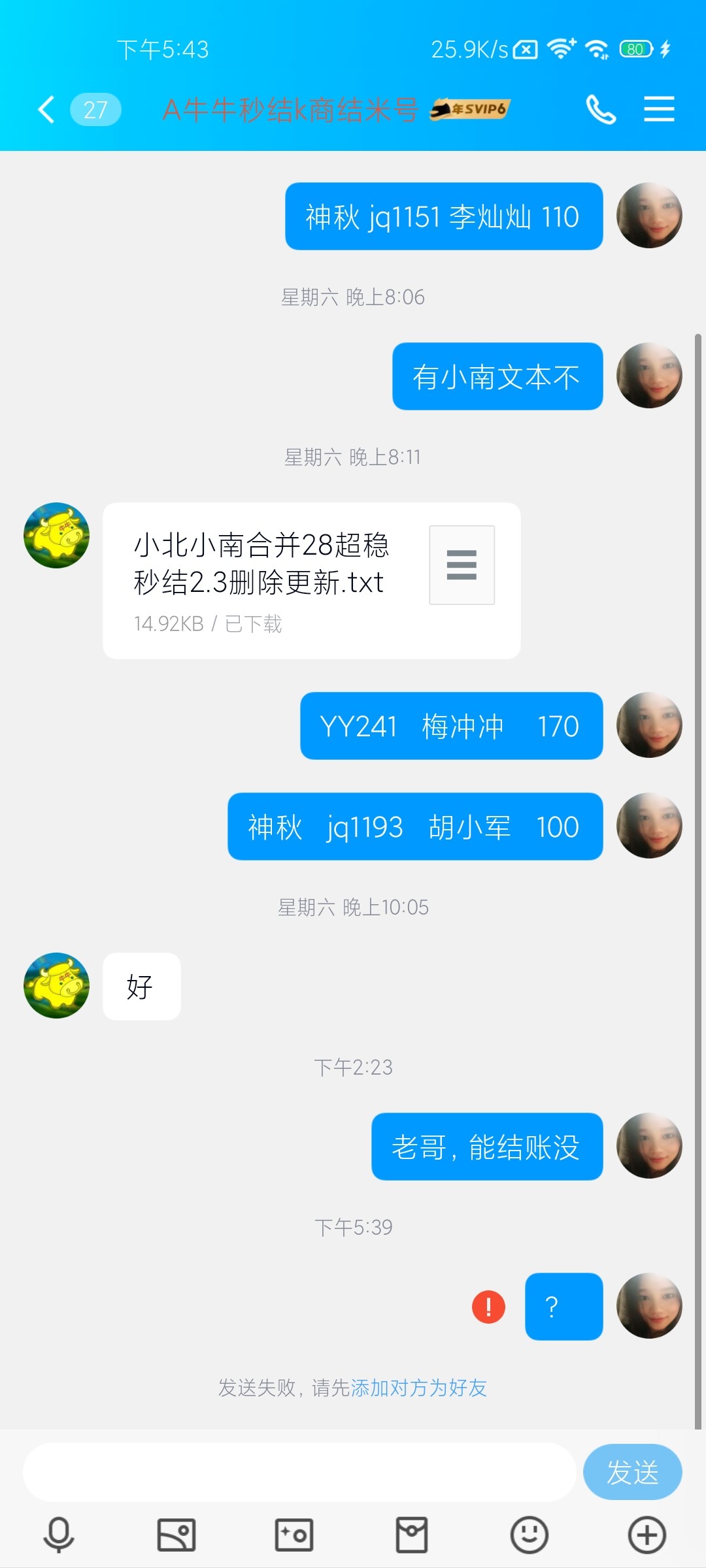 q群630527186   q号2120048933注意避雷❗  之前的卡商联系不上,找了个老哥拉个卡商群,群里面1600多人,想着应该挺稳定的,先报了110,后面又报了270,一共380,今天去找他要账直接把我踢了,好友直接删了,还有一点都没有提,想着等他结完账,结果这狗比就跑路了!!!