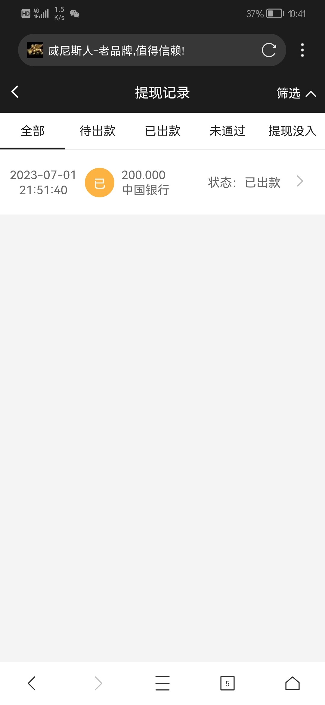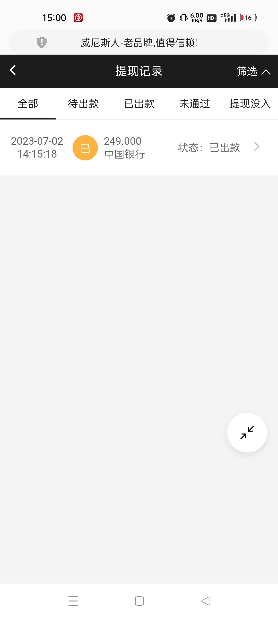提现3个小时 到账了