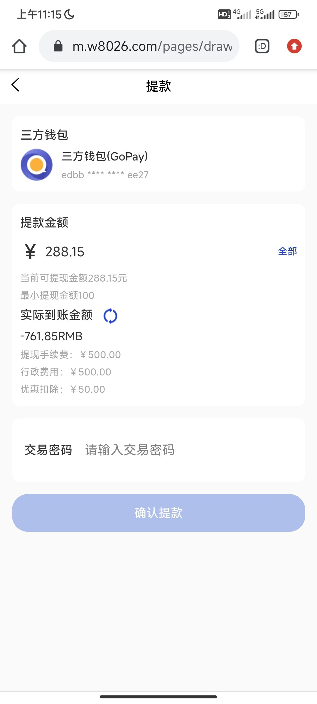 开元100+58 提现1791直接扣除